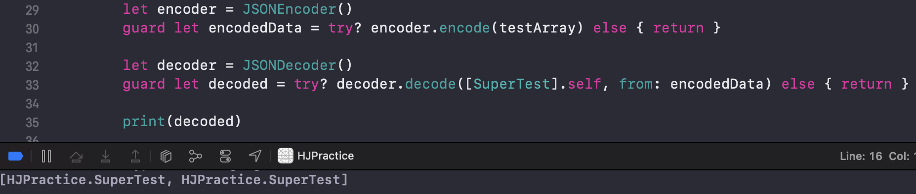 그러나 해당 배열을 인코딩 후 디코딩하게 된다면 SuperTest의 타입으로 디코딩되어 하위 타입으로 디코딩되지 않는 것을 확인할 수 있습니다.