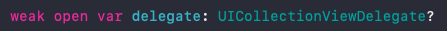UICollectionView가 어떻게 구성되어 있는지 살펴보면 delegate라는 프로퍼티를 가지고 있는 것을 확인할 수 있습니다 .