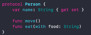 클래스, 구조체, 열거형에 프로토콜을 채택해서 프로토콜을 준수하도록 구현해야합니다.