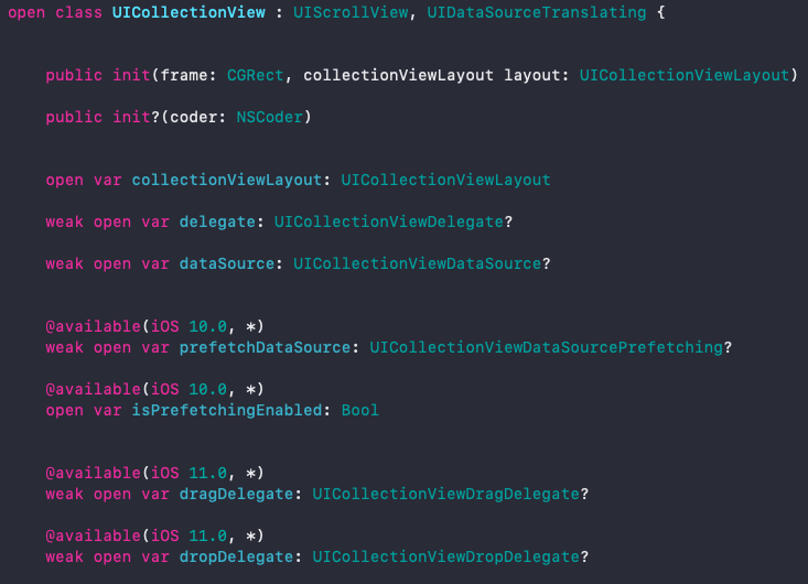 delegate의 타입인 UICollectionViewDelegate를 확인하면 protocol인 것을 확인할 수 있습니다.