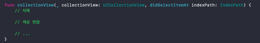 예를 들어, UICollectionView의 아이템이 선택되었을 때 동작하는 메소드입니다.