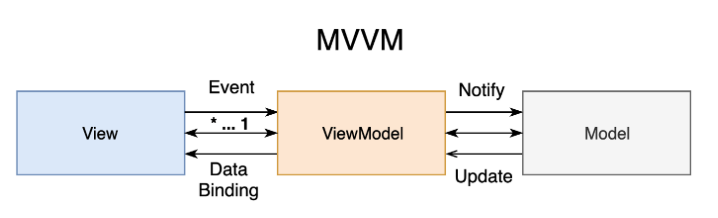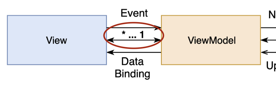 View와 ViewModel은 n : 1 관계이다. 반면에 다른 패턴들에 비해 코드량이 매우 늘어나게 됩니다.