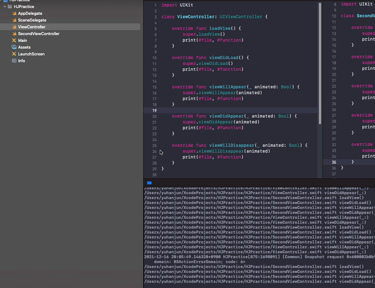 viewWillAppear만으로는 감이 확실히 오지 않으니 viewDidDisappear와 함께 살펴보도록 하겠습니다.
