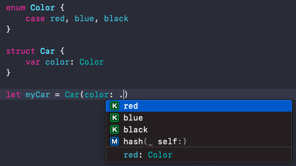 이렇게 열거형 뒤에 지정하고자 하는 타입을 작성하고 각 case에 값을 할당하면 사용할 수 있어요.