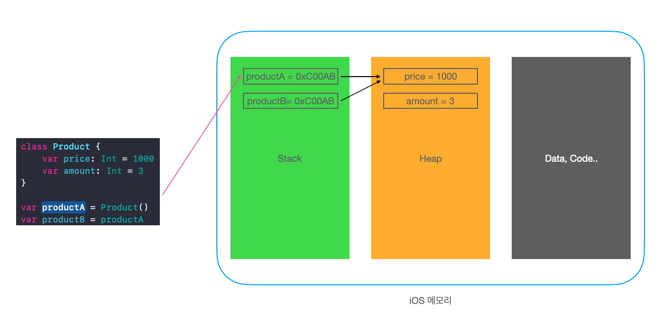 productA를 할당받은 productB를 만들면 위의 그림처럼 같은 참조를 가지고 있는 친구만 Stack에 추가되겠죠?