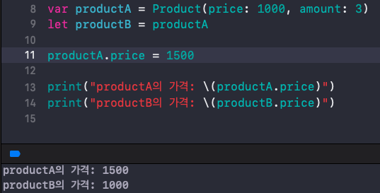 또한 값 타입이기 때문에 let으로 선언한 인스턴스는 값을 변경할 수 없어요